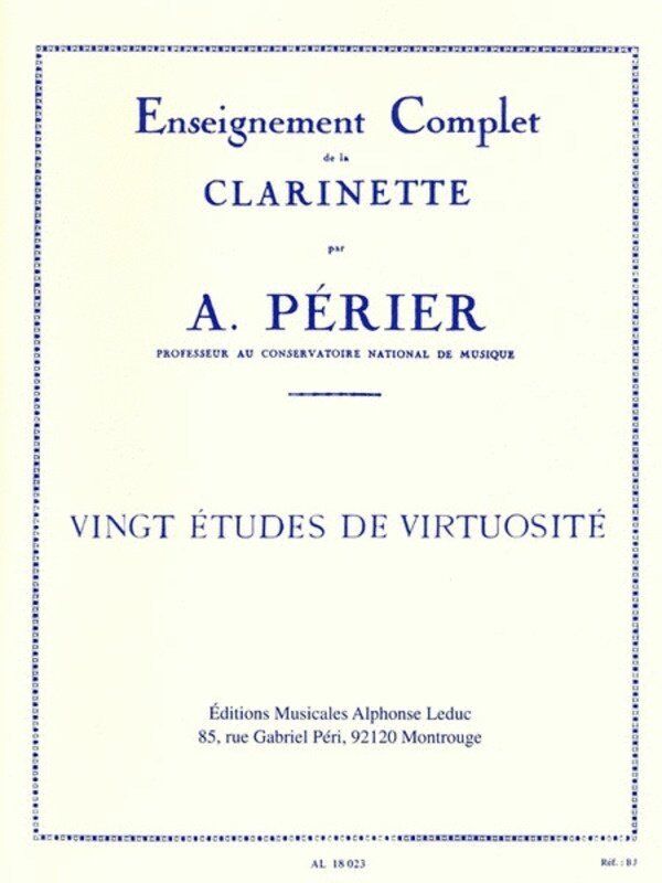Born in southern France, Auguste Prier (1883-1947) studied at the Ecole Nationale de Musique in Montpellier before entering the Paris Conservatoire. Whilst studying, he won the 1904 first prize for Clarinet, proving his significant ability on the instrument. Therefore, his Complete Study of the Clarinet is very well-informed. The eighth volume of the series, 20 Virtuosic Studies is suitable for clarinetists of grades seven and eight standard. It addresses features including articulation, dynamics, scales, arpeggios, accidentals, ornamentation, performance directions, tempo markings, phrasing, key and time signatures, and complex rhythms, among other aspects. Prier 'sComplete Study of the Clarinet (20 Virtuosic Studies) is essential to advanced clarinetists seeking to improve their technique to a high standard. 20 Virtuosic Etudes For Clarinet Composer: Auguste Perier Publisher: Alphonse Leduc Instrument: Clarinet