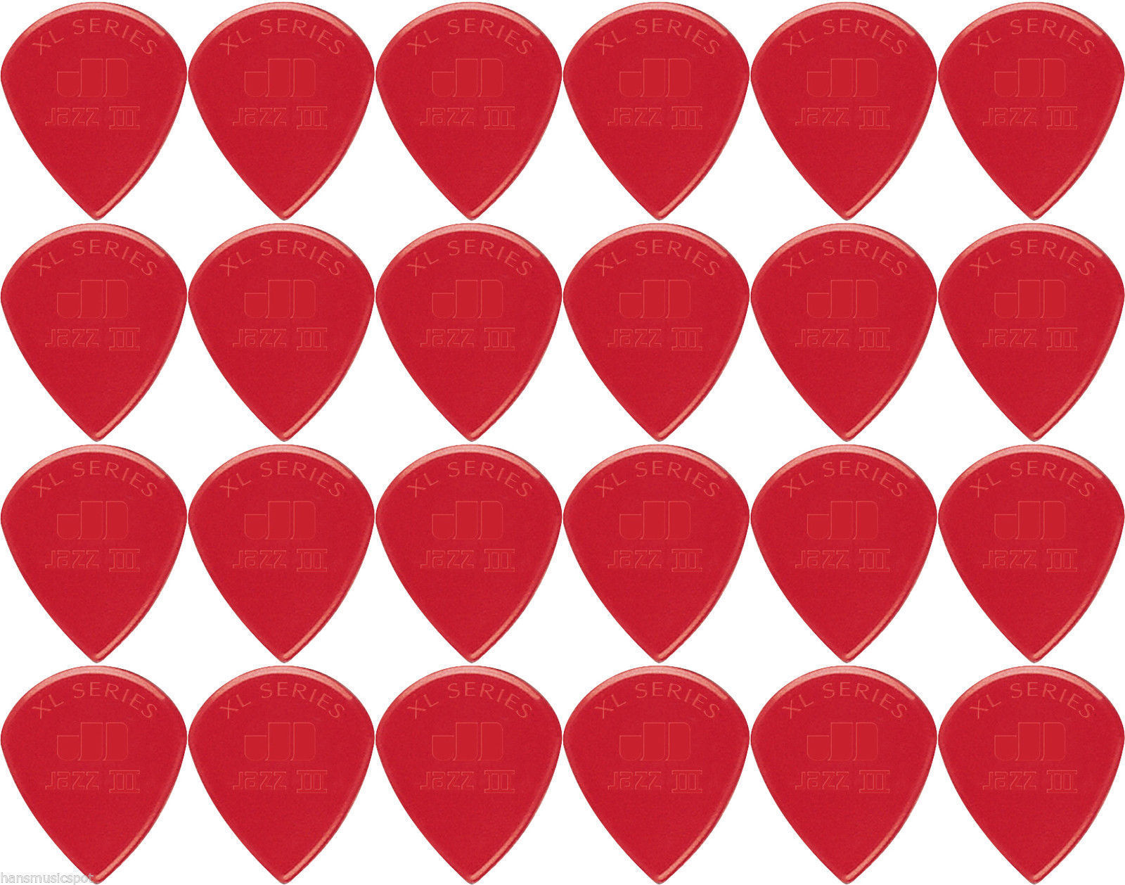 24 x Dunlop Jazz III XL Red Guitar Picks 47RXLN Free Postage