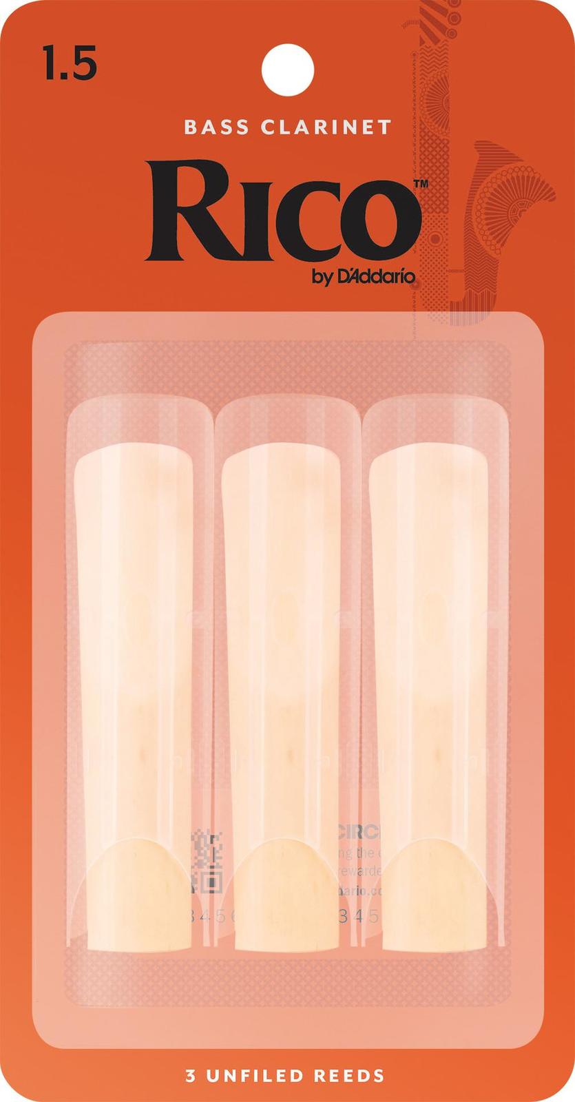 Rico Bass Clarinet Reeds, Strength 1.5, 3-pack