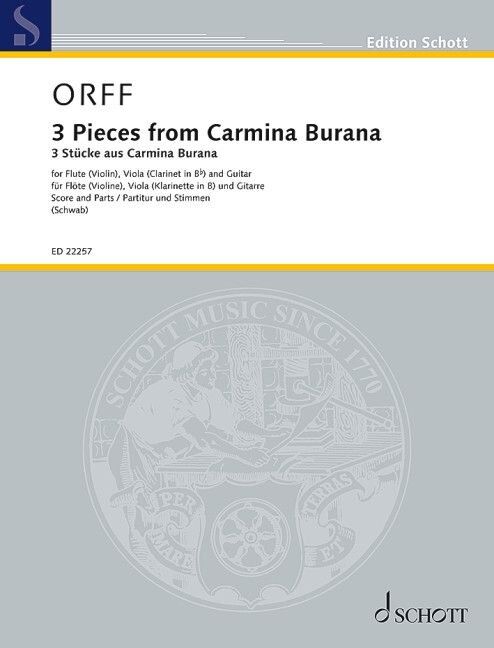 Uf dem anger - In trutina - Were diu werlt alle min 3 Pieces from Carmina Burana Composer: Carl Orff Arranger: Siegfried Schwab Publisher: Schott Music Instrument: Flute|Guitar|Viola Pages: 20 Series: Edition Schott