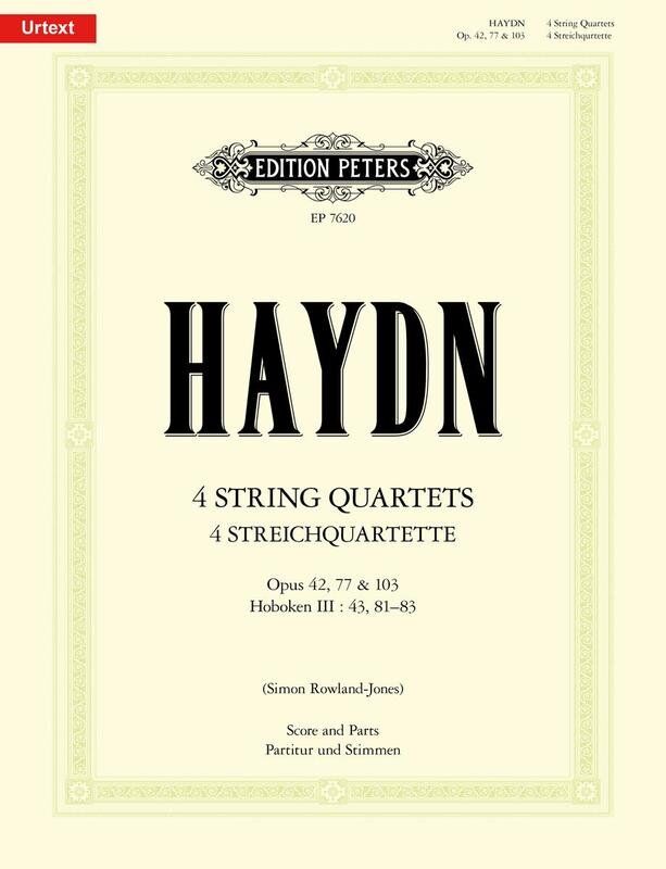 4 String Quartets Op. 42 Op. 77 Op. 103 Composer: Joseph Haydn Publisher: Edition Peters Instrument: Quartet Format: String Quartet Pages: 1