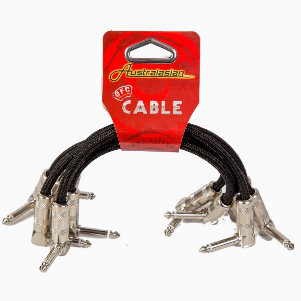 6 x Australasian 6 Inch Braided Black Patch Lead Cable Right Angle, Pedal Boards