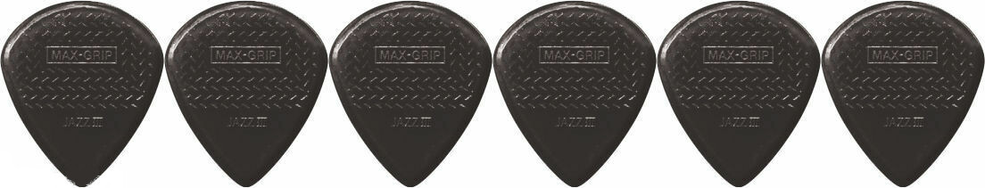 6 x Jim Dunlop Max Grip Jazz 3 Black Stiffo Gauge Guitar Picks Jazz III