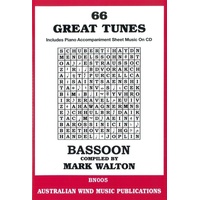 66 Great Tunes for Bassoon Book/CD covers a wide range of levels from grades 2 to 5 with pieces that are suitable for exam performance, eisteddfods, recitals and of course to play just for fun. The CD contains PDF Accompaniments. 66 Great Tunes for Bassoon Arranger: Mark Walton Publisher: Australian Wind Music Publications Instrument: Bassoon Pages: 1 Series: 66 Great Tunes