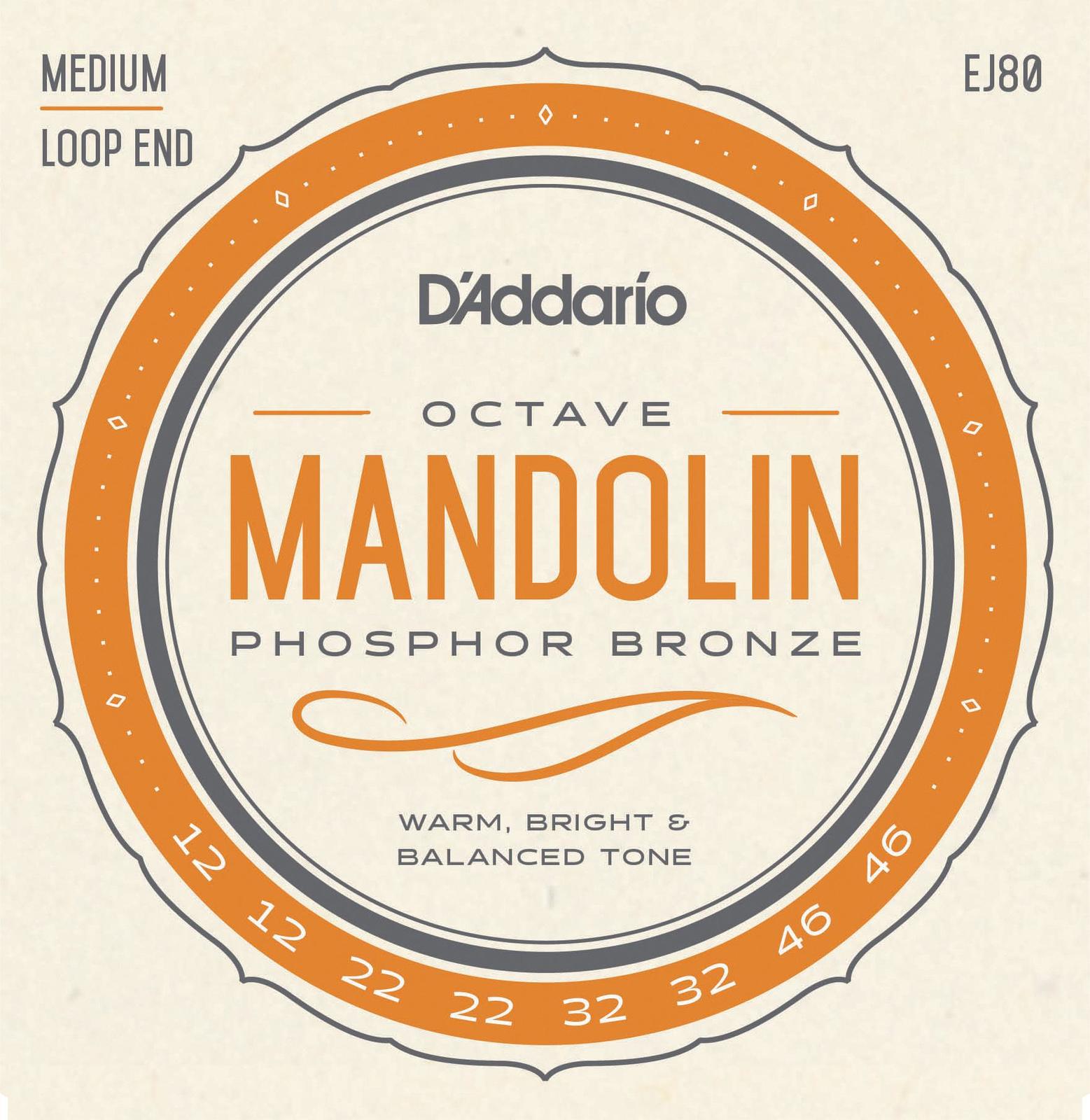 D'Addario EJ80 Phosphor Bronze Octave Mandolin Strings, Medium, 12-46