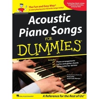 Learn to play 38 acoustic hits with this solid collection! The book features piano/vocal/guitar arrangements and plain-English performance notesfor each of the popular songs, which include: American Pie • Crazy Little Thing Called Love • Have You Ever Seen the Rain? • I'l l Follow the Sun • Imagine • Jack and Diane • Leaving on a Jet Plane • Night Moves • Summer Breeze • Time in a Bottle • Wanted Dead or Alive • You've Got a Friend • and many more. Acoustic Piano Songs for Dummies Publisher: Hal Leonard Instrument: Songbook Format: Piano, Vocal & Guitar Pages: 248 Series: Dummies