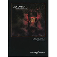 "Cantata mundi" is a development of ideas first heard in "Songs of Sanctuary", where the world of ethnic influenced (both in vocal sound and percussion) are combined with established Western European classical technique to present a unified work.Vocally, the spread of influence is wider than in "Songs of Sanctuary", with Eastern European and Arabic sounds added to the African, "Celtic" and ecclesiastical blend. Once again, the text is written phonetically with the words viewed as instrumental sound.In "Cantata mundi", the sound is more symphonic, with woodwind and bras s added to the strings, percussion and recorder. The seven main "Cantus"movements incorporate ethnic percussion, and are interspersed with shor ter "chorales". This suite is an arrangement for upper voices and piano with additional recorder part and includes four "Cantus" and four "chorale" movements. Adiemus II - Cantata Mundi Composer: Karl Jenkins Publisher: Boosey & Hawkes Instrument: Choral Format: Vocal Score Pages: 72