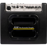The Alpha is a professional, compact and powerful amplifier system. Especially developed for the enhancement of acoustic instruments, it is as well suitable for other (also electrical) instruments. With one channel but two independant input stages (line and microphone/line) the Alpha offers you various options in signal processing. 40 Watts plus the 8" twin cone speaker system of the Alpha provides you with a well-balanced tone at all sound pressure levels. All AER systems are subtly dynamically controlled, which ensures absolute reliability in full load operation despite strikingly small sizes and little weight. FEATURES: Two input stages - the starting point for professional amplification for instruments and e.g. high quality condenser microphones. Input one provides 48-V phantom power 8" twin-cone speakers and 40 watts, perfect for every rehearsal room and on smaller club stages. High-end DI-out to the FOH system Reverb as an onboard effect 6 kg light weight, transportable in public transports as well as hand luggage in airplanes. All AER amplifiers are delivered with a high quality padded Gigbag. Recommended for: Acoustic guitar, voice, short attack instruments such as ukulele, mandolin, banjo, violin, harmonica and voice. SPECIFICATIONS: Input one combined XLR/6.3 mm (1/4") input jack socket as high-quality line- or balanced microphone input stage 48 V phantom power, gain control. Input two 6.3 mm (1/4") input jack socket as high impedance line input stage with pad (high/low attenuation) 9 V phantom power and gain control. Equalizer Three band tone controls Colour 'Mid-cut-treble-boost'-filter Effects Digital reverb Power amp 40W / 4 ohms, dynamic control Speaker system 8" (200 mm) twin cone speaker Features headphones, line out, DI-out, external effect loop via send and return, footswitch (internal/external effect on/off ) Dimensions 260mm x 265mm x 235mm (10.24" x 10.43" x 9.25") H x W x D Weight 6.3 kg (13.7 lbs) This is what Michael Fix says (Australian, singer/songwriter)... " The AER Alpha & Compact 60 have been part of my live acoustic rig since 2006, and I can't imagine being on stage without connecting my Maton guitar to an AER amplifier. It's my sound and my "safety blanket" - a compact and reliable travel companion! "