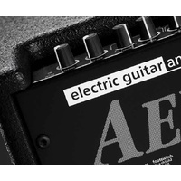 It has been a challenge for long and so here it is... the first AER amp for electric guitar. Solid state input-stage and tube input-stage, tube distortion, and 200 watt high efficiency solid state power-amp. According to AER's sound philosophy, the cheeky d. is extremly clear, powerful and direct. It offers the sensitivity and distinction to follow the smallest changes and provide you with enormous dynamic reserves. For jazz, fast as hell for country-rock and fat and loud for rock 'n' roll. Features: - 200 watts, dynamic control - 10" (250 mm) twin cone fullrange speaker - Single channel guitar combo - 4 digital effect presets and distortion - 15.2 kg (33.50 lbs)