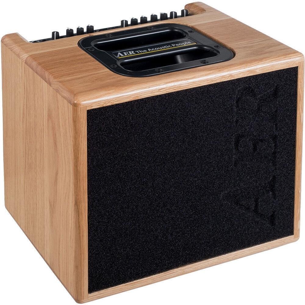 The Compact 60 has proven that there is an all-round, small, powerful and yet simple to use complete solution for stage, studio and home use that works up to the highest demands and standards of acoustic players. It has found many friends around the world with it's size, smiled at in the beginning, being it's second strongest side. It has become the standard equipment "the amp of choice" for  those musicians who value sound, simplicity and independence. It has qualified for nearly all instruments and applications FEATURES: Two independent channels for instrument and z. B. high quality condenser microphones. Channel 2 provides 48-V phantom power. For channel 1, 9 V phantom power can be switched on in order to supply your pickup system with the required voltage. A customized 8" twin cone loudspeaker and 60 watts RMS output power, sufficient to dynamically and powerfully amplify your instrument in every rehearsal room and on club stages. High-end DI-out to the FOH system 4 onboard effects: short reverb, long reverb, delay, chorus. The effect can be added to each channel via a PAN control. 7 kg light weight, transportable in all public transports and also as hand luggage on airplanes. Independent 3/2-band EQ All AER amplifiers are delivered with a high quality padded gigbag. Recommended for: Acoustic guitar, voice, wind instruments, mandolins, oud, traditional Chinese instruments, mouth harp, but also cellos and electrical instruments SPECIFICATIONS: Channel 1 6.3 mm (1/4") input jack socket as high impedance line input stage with pad (high/low attenuation), 9V phantom power and gain control Channel 2 C Combined XLR/6.3 mm (1/4") input jack socket as high quality line or balanced microphone input stage 48V, gain control Equalizer Three band tone controls for channel 1 and two band tone controls for channel 2 Colour 'mid-cut-treble-boost'-filter Digital effect processor with 4 presets 2 x reverb, delay, chorus Power amp 60W / 4 ohms, dynamic control Speaker system 8" (200 mm) twin cone speaker Features Headphones, line out, DI-out, external effect loop via send and return, footswitch (internal/external effect on/off ) Dimensions 260mm x 325mm x 235mm (10.20" x 12.80" x 9.25"), H x W x D Weight 7.1 kg (15.6 lbs)