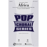 Millions saw the amazing You Tube performance of Toto's Africa by the Slovenian choir Perpetuum Jazzille as they recreated the sounds of a rainstorm solely with body percussion. This accessible arrangement will allowyour choir to wow your audience the same way! Includes simple percussio n part. Available separately: SATB, SAB, 2-Part, ShowTrax CD. Rhythm parts available digitally (syn 1-2, gtr, b, dm, perc). Duration: ca. 3:50. Africa Arranger: Roger Emerson Publisher: Hal Leonard Instrument: Choral Format: ShowTrax CD Pages: 1