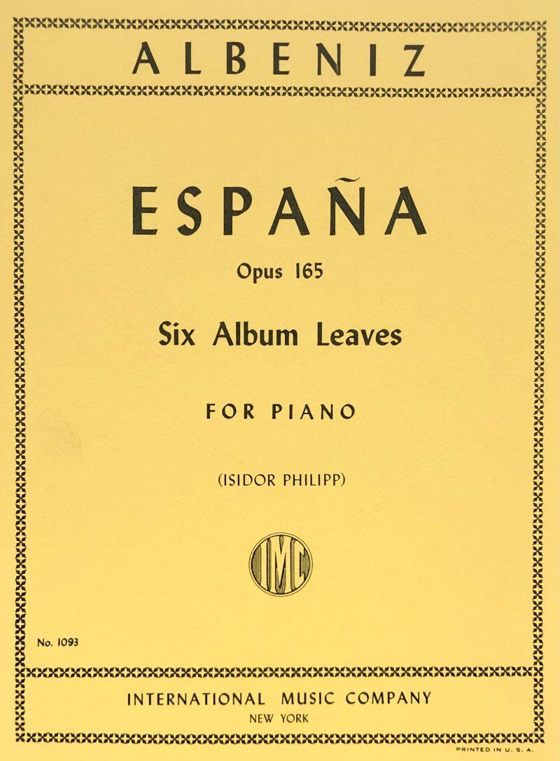 Composed by Isaac Albeniz (1860-1909). Edited by Isidor Philipp. Score. Espana (Six Album Leaves) Op. 165 Composer: Isaac Albeniz Publisher: International Music Company Instrument: Piano Format: Piano Solo Pages: 1