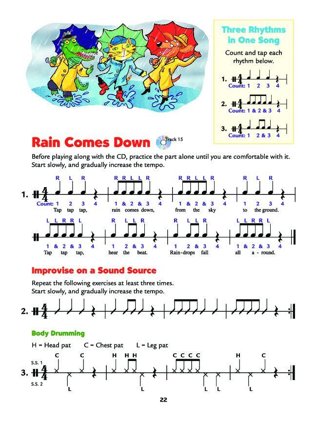 Three irresistible drum experts---a clever, classical dog, one cool cat, and a friendly alligator-keep students' attention focused by pointing out what's important on each page and help make learning music fun! This full---color book is specifically desig