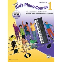 Alfred's Kid's Piano Course is the easiest piano method ever for kids ages 5 and up. Using plain language that's easy for kids to understand, three irresistible piano experts---a clever classical dog, one cool jazz cat, and a friendly alligator who loves the blues---guide students along. They draw attention to what's important on each page and make learning music fun! Kids will learn to play notes and melodies, read music, and perform lots of fun songs. This book also includes accompanying audio to stream or download so you always know how the music should sound. The online video includes every lesson and example explained and played by expert teacher Gayle Kowalchyk. Perfect for home schooling! Alfred's Kid's Piano Course 1 Composer: Christine H. Barden|E. L. Lancaster|Gayle Kowalchyk Publisher: Alfred Music Instrument: Piano|Keyboard Pages: 48