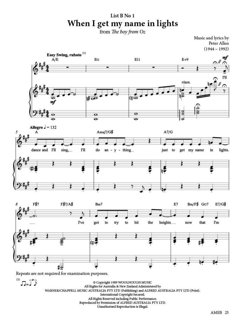 The AMEB Musical Theatre publications, in 5 volumes from Preliminary Grade to Grade 4, showcase the best musical theatre repertoire internationally, feature Australian compositions and are a cost-effective collection of graded material for study and exami