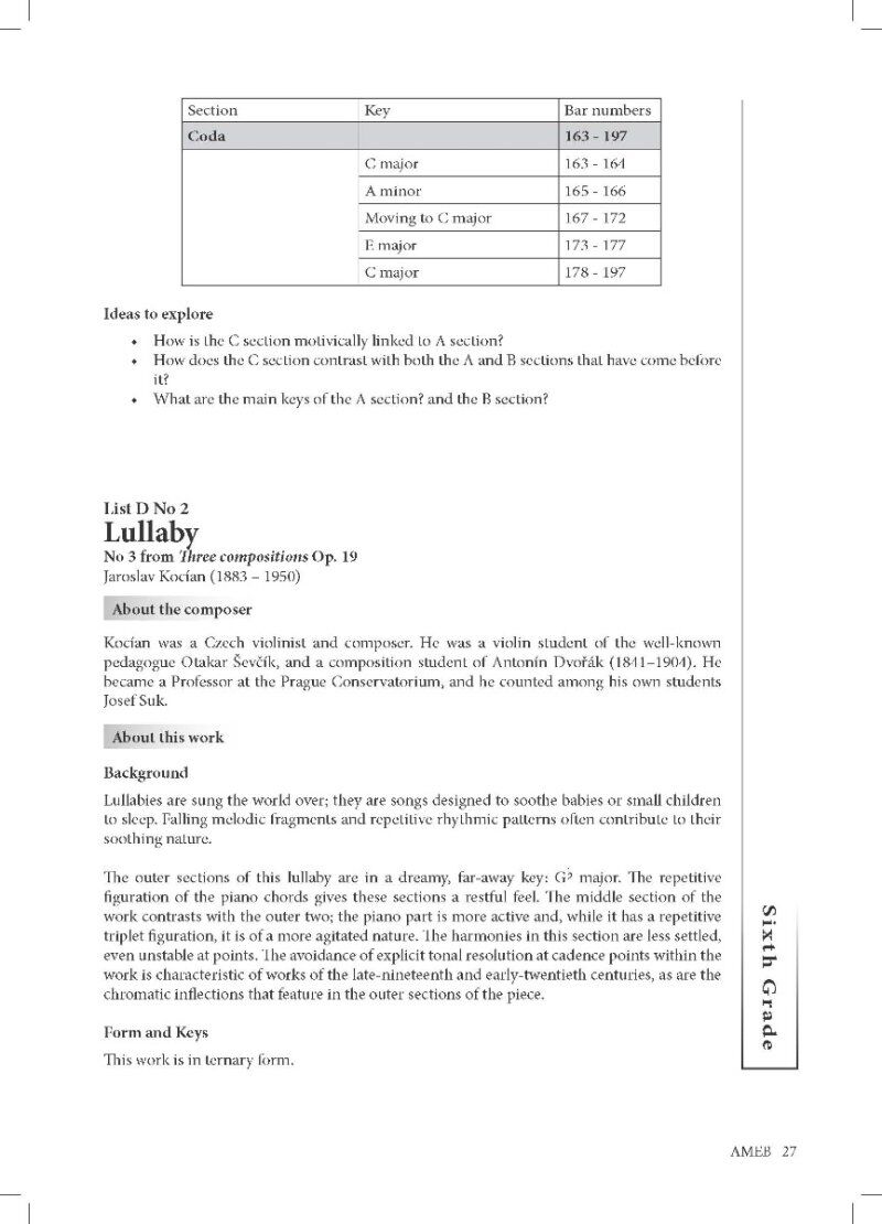 Contains a CD with recordings of all the repertoire that is contained in the corresponding grade book, as well as detailed analyses of all these pieces with a wealth of information about the historical, biographical and interpretative elements of each of the works. Complete with a glossary of key terms, this CD & Handbook helps students address the Section III General Knowledge requirements of examinations. Violin Grade 6 Series 9 CD Recording Handbook Publisher: AMEB Instrument: Violin Pages: 41 Series: AMEB Violin