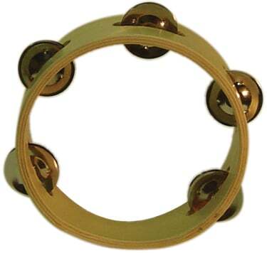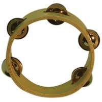6 inch Tambourine. Headless. Budget model. Wood rim with 5 pairs of jingles in single row.