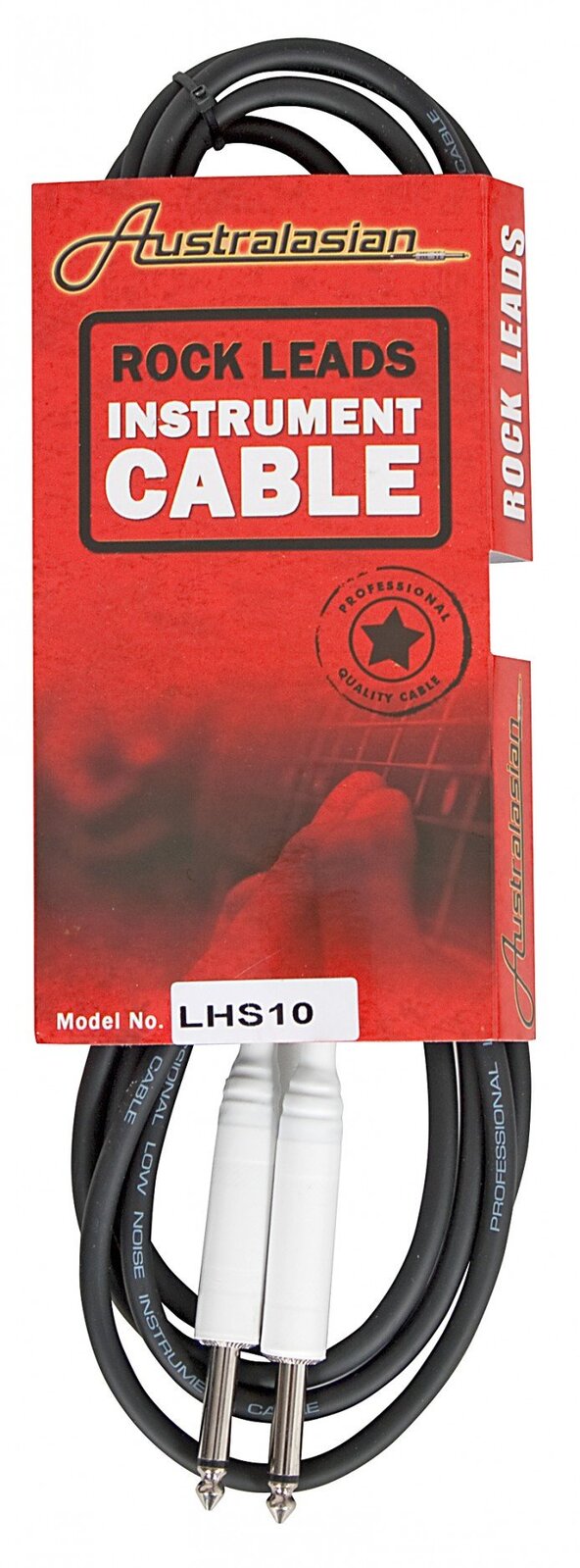 10 foot oxygen free copper professional guitar cable. 6mm O/D. Straight to straight connectors with gold tips. White heat shrink reinforced. Black.