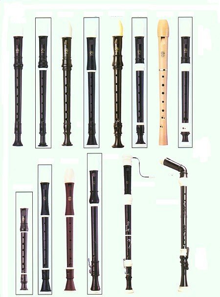 1 piece plastic. Dark brown with white mouthpiece. Vinal bag with fingering chart and cleaning rod.
