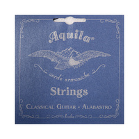 Until the mid-20th century all Treble guitar strings were made in gut, a material that had been used for thousand of years and that combines good promptness of attack and excellent performances . A fundamental aim of Aquila’s research has therefore to design a new synthetic product having the same acoustic properties as gut, but without its typical defects (high cost, short lifetime, high instability under moisture changes). The Supernylgut has precisely all these good qualities without all these defects. Its features include promptness of attack, excellent performances and a truly remarkable stability of intonation under moisture changes. The Alabastro Basses, wound with high quality- silver-plated copper, consist of a Supernylgut multifilament core that ensures not only a high resistance to tensile stress but also a low absorption of both atmospheric humidity and sweat. Available in three tensions.