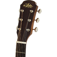 Aria 200 series acoustic guitars are constructed from high quality tonewoods and deliver well balanced clear tone. ARIA-201 offers perfect versatility for a wide range of player's needs with a Solid Spruce top, Mahogany back and sides, Mahogany neck with a Pau Ferro fingerboard and a superb looking venetian cutaway. All this and a beautiful Natural Gloss finish. The onboard electronics are handled by the Fishman Presys II Preamp System which is dedicated to providing maximum sound quality in a small footprint. This preamp system features Volume, Tone shaping and Phase controls. A Fishman Sonicore pickup and low profile control knobs. Also included are a low battery indicator and a separate battery box. The History of Aria Guitars (Arai & Co., Inc.) "It all started with the classical guitar", says Shiro Arai, Chairman and the founder of Aria Guitars. One day, a friend came to visit Shiro's apartment with a guitar. Shiro was expecting to hear Koga-type Japanese po pular music, but instead his friend started to play a piece by Bach. From this moment, he had been inspired by the sound of this instrument forever. The very next day, Shiro bought his first guitar, costing over two months salary and began to teach himself to play. Now playing day and night, his passion for the guitar brought him to a famous classical guitar master in Nagoya, and soon became one of his students. Shiro started work for a trading company in 1947, aged 17. In 1953, Shiro and two of his colleagues resigned their positions and founded their own trading firm. After the fledgling company failed after just one year Shiro found himself homeless with nothing but his guitar. In order to live and settle the outstanding debts from this first business he started to teach the guitar. In 1954 unable to buy guitars, music and strings in Japan's music stores, Shiro started to import classical guitars, Augustine guitar strings, and musical scores for himself and his students. These were the first classical guitars imported into post-war Japan and included instruments from renowned makers Jose Ramirez and Hermann Hauser. Recognising an incre asing demand for guitars from friends and players throughout Japan, Shiro grasped the opportunity to start his own business. On August 2nd, 1956, ARAI & CO., INC was founded. At this time, although demand for classical guitars and accessories were increasing, it was still comparatively low and business was supplemented with other products including woollen material. The name, "ARIA" which means expressive melody, was first used in 1958 when Arai exported Japanese built classical guitars fitted with steel strings to South East Asia in 1963. Also the letters of his name "ARAI" were just switched around to "ARIA as he recalled. Shiro embarked on a tour of the US with two of the best Japanese KOHNO guitars. At that time Japanese guitars had a poor reputation for developing body cracks and warped necks after being exposed to drier conditions abroad. It was Shiro's intention to prove how good Japanese guitars were by performing and showing to fellow guitarists, teachers and music shops. After two months these guitars also started to crack. Even the best available Kohno guitars faced the same problem. Shiro took these cracked guitars back to Japan to show their makers just how vital it is to use properly seasoned tone woods. This trip gave Shiro the experience and knowledge to improve the quality of guitars and export Japanese guitars worldwide. It was as early as the late 50's when Arai started to import Fender guitars and amplifiers from the US, although at that time the Japanese market was not quite ready for the electric guitar! With the advent of rock n' roll demand for electric guitars took-off. Arai released its first ARIA brand electric guitars in early 60s and soon after started to export to the US followed with models including the 1532T and 1802T. To counter the decline of the solid body electric guitar boom, Arai released the Aria Diamond series hollow body semi-acoustic guitars. Aria Diamond was named after the imitation diamond inlayed into the headstock. This series lead to the release of the 1202 models in 1966 and caused nothing short of a sensation in Japan. From 1967 Aria added a variety of models including the solid body 1702T, R-320, and violin shaped 12-string and bass guitars, and a full acoustic guitar. In 1975, Aria Pro II was developed from Aria's custom shop making high-end models for professional users. In 1976, Aria Pro II released its first original model, the PE-1500. PE (Prototype Line) is a classic Aria design, also known as the legendary masterpiece, it featured an arched top, and all maple carved body with Aria's original "heel-less neck and DiMarzio Super Distortion Humbucking Pickups. Primarily designed for tone and playability, the PE series has been modified to match today's trends while keeping its original features and timeless design. In 1978, Aria Pro II released another long-selling model, the SB-1000. The SB-1000 was highly regarded throughout the world and came to represent everything that was good about Aria and Japanese guitar building. Featuring a Canadian Ash body with neck through body and, to enhance playability, a heel-less neck. For its original tone, SB featured the Aria original BB circuit. Its exotic see-through finish and the eye position marks make the SB amongst the most distinctive basses ever made. Aria Pro II led the way with the 80's shift to Hard Rock and Heavy Metal. Releasing many models such as XX, ZZ and U-1. Whilst not abandoning their routes also re-established the semi-acoustic guitar models, FA and TA. The 80s, also saw the introduction of the famous IGB (SB INTEGRA) bass series. In the early 1990s, after the heavy metal rush, Aria Pro II released one of its favourite original models, the MA series to reinforce the PE and SB line-ups. MA series bodies are constructed with innovative crystal shaped carved top and back. Continuing i