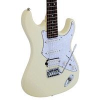 High quality guitars for everyone. That is Aria's credo over 60 years of its history. The 714 Series really stands for it, with simple but rich specifications at marvelous value. Your sound is already there! With true Aria design, the 714-STD Electric Guitar features a slashing cut look with the Vintage White finish and white pearloid pickguard, a 25.5" scale maple neck, 22-fret fingerboard with dot inlays and Vintage style tremolo. This extremely well-made guitar is loaded with two Aria OS-1 Single Coil Pickups and one OH-1 Humbucking Pickup for obtaining that great versatile tone you are looking for, and what's more... it's incredibly affordable! Vintage looks with cracking tone!!