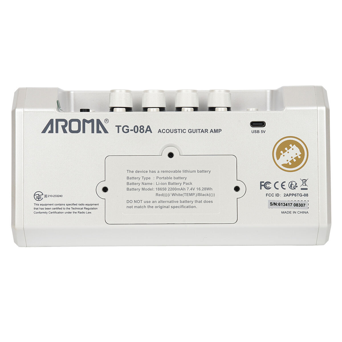 Aroma 10W Acoustic Guitar Amplifier with Drum Machine TG-08A, Bluetooth, Effects, 5-6 Hours Battery Life, Type-C Charging