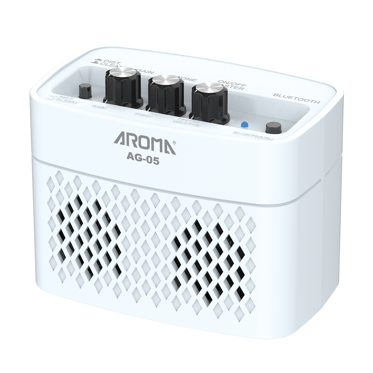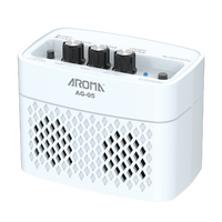 Electric Guitar Amplfier • High capacity rechargeable lithium batteries • 5 Watt stereo analog amp • Effects: Clean & Distortion • Bluetooth • Line out • Headphone in • Available black or white • Size: 430x213 mm