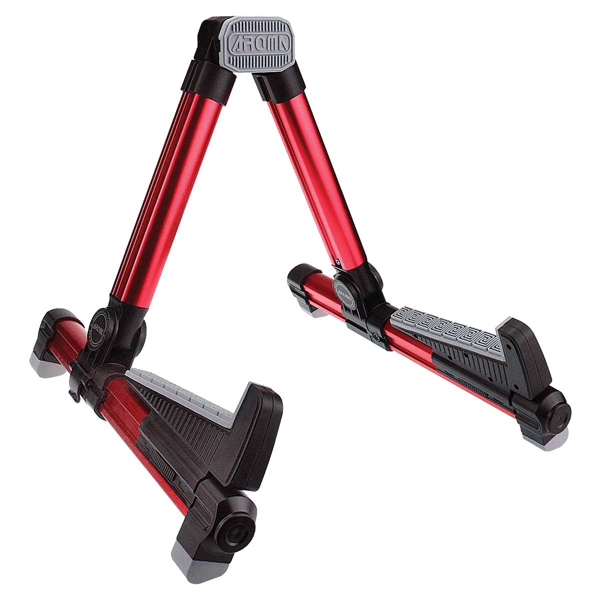 Aroma AGS08 Red Foldable Guitar Stand - Lightweight Aluminium with Silicone Pads, Suitable for Acoustic, Electric Guitars & Bass