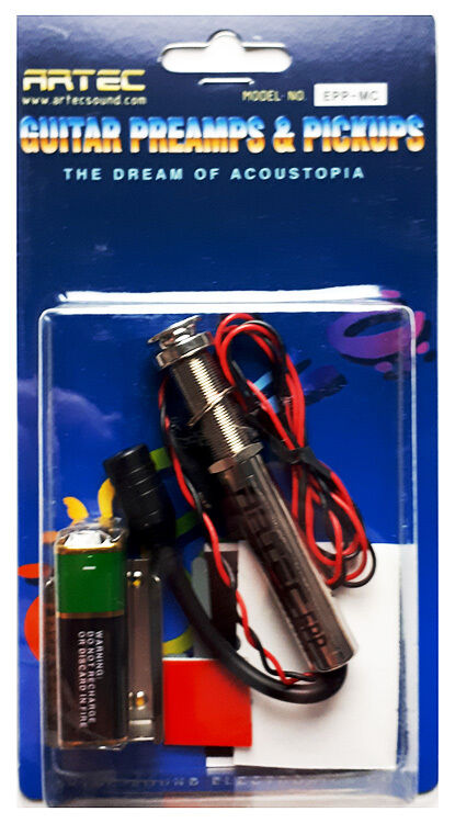 Artec EPPMC Endpin Preamp System with Microphone for Acoustic Instruments Pack Includes: Preamp output Jack Microphone Battery snap and cable Battery Mount with Velcro Battery: 9V Alkaline Specifications: Power: Battery DC-9V Current: 0.1mA Battery lifeti