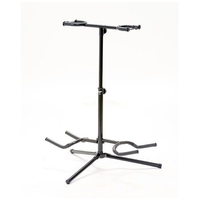 Double Metal guitar stand with neck cradle. Adjustable from 63-82 cm. Available in black finishes.