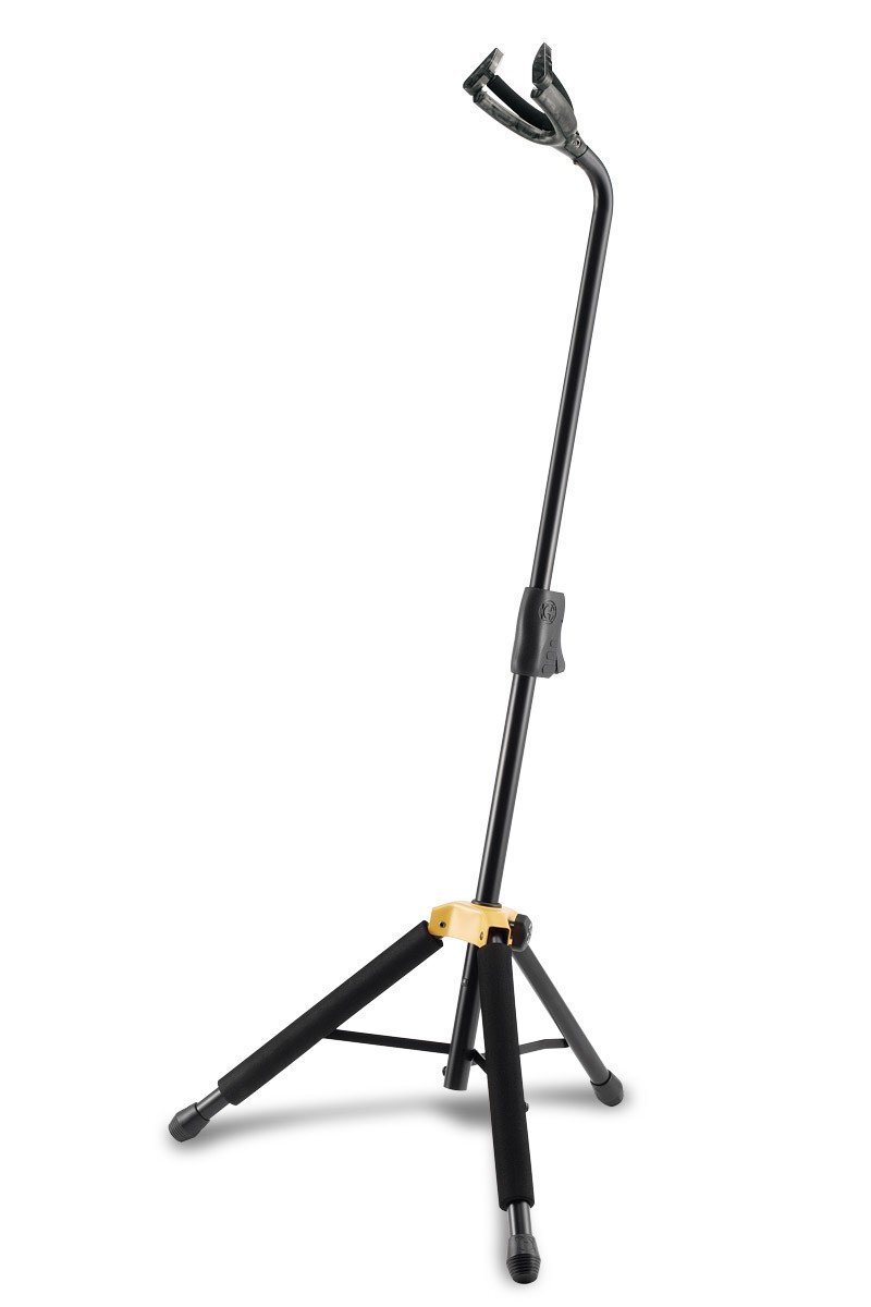 Hercules GS455B Universal guitar stand holds necks as little as 28mm and neck widths up to 55mm and everything in between.For use with classical guitars, electric guitars, acoustic guitars, banjos and electric basses (accommodates most 5-string and 6-string models).SPECIFICATIONS:Auto Grip System yoke with translucent lookComfort GripSpecially Formulated FoamHeight: 920-1185 mm (36.2-46.6")Weight: 1.9 kg (4.2 lbs.)Base radius: 330mm (13")Load capacity: 15 kg (33 lbs.)Folded size: 740x190 mm (29.1x7.5")