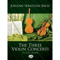 In one inexpensive volume, here are three of the most beloved works in the violin repertoire - the Concerto in A Minor (BWV 1041), the Concerto in E Major (BWV 1042), and the Concerto for Two Violins in D Minor (BWV 1043) - reproduced from an authoritative edition. Bach - The Three Violin Concerti Composer: Johann Sebastian Bach Publisher: Dover Publications Format: Full Score Pages: 64