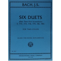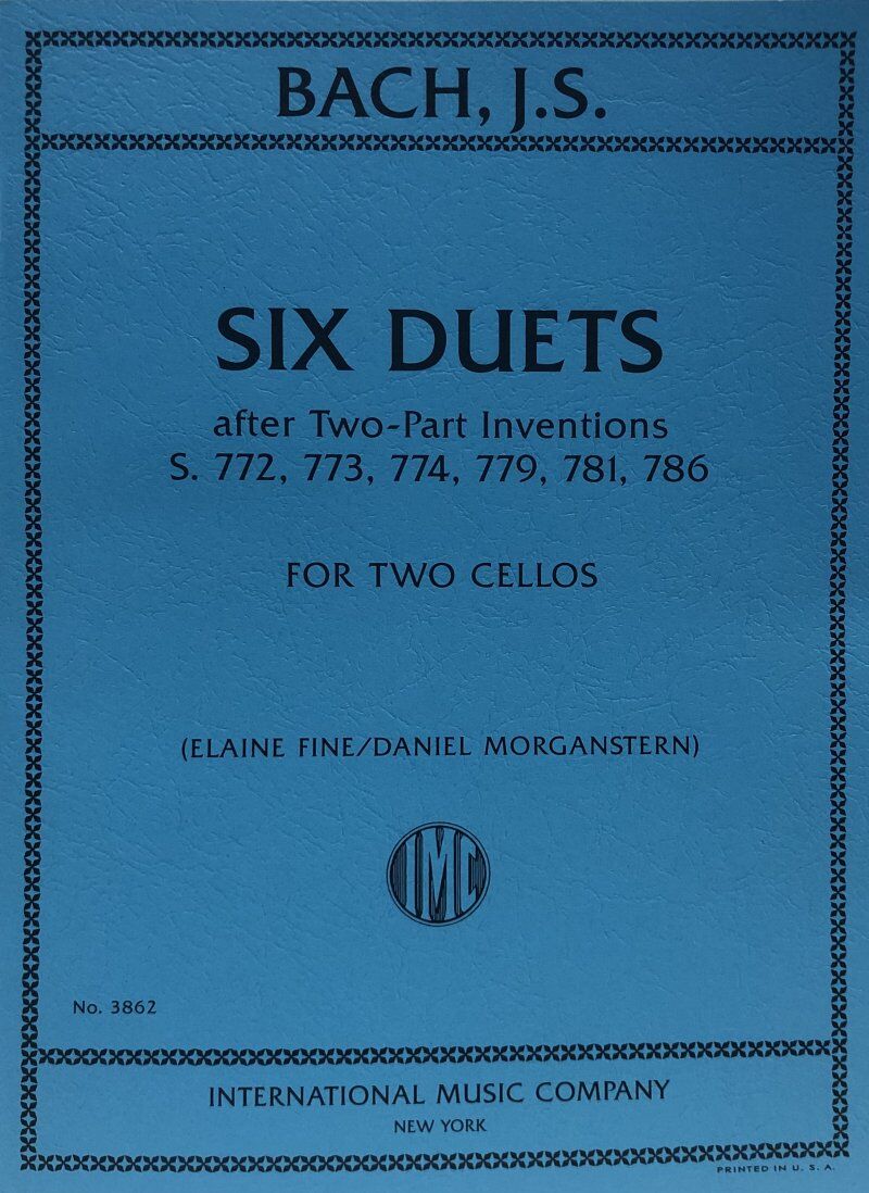 Contents: Inventions Nos. 1, 2, 3, 8, 10, 15 from the keyboard set, newly arranged for two cellos by Elaine Fine, based on an arrangement by Julius Conus. Six Duets after Two-Part Inventions Composer: Johann Sebastian Bach Arranger: Daniel Morganstern|Elaine Fine Publisher: International Music Company Instrument: Cello Format: Cello Duet Pages: 14