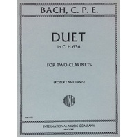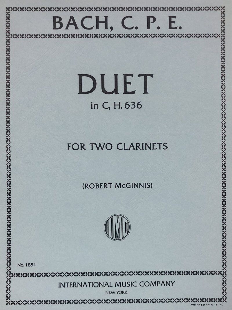 Composed by Carl Philipp Emanuel Bach (1714-1788). Edited by Robert McGinnis. Duet in C major H. 636 Composer: Carl Philipp Emanuel Bach Publisher: International Music Company Instrument: Clarinet|Duet Format: Clarinet Duet Pages: 1