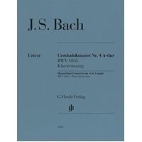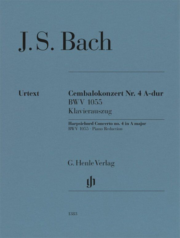 The piano reduction contains the solo part with carefully chosen fingerings by Michael Schneidt, plus a piano accompaniment that Johannes Umbreit has arranged so as to be practical and easily playable. Harpsichord Concerto No. 4 A major BWV 1055 Composer: Johann Sebastian Bach Publisher: G. Henle Verlag Instrument: Piano Format: 2 Pianos 4 Hands Pages: 35
