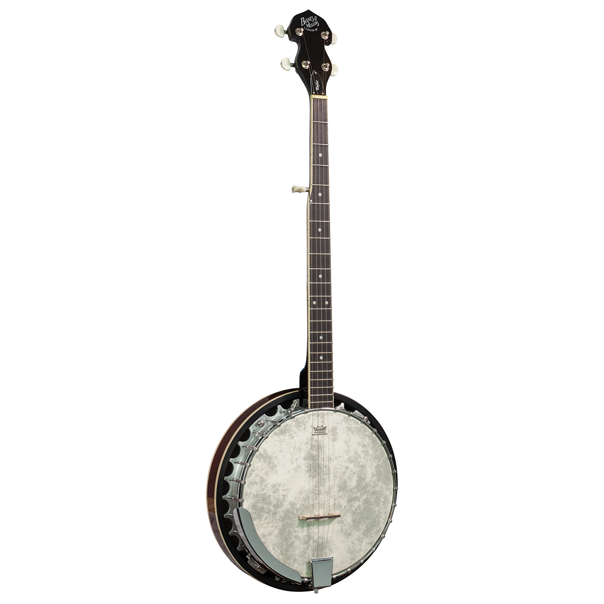 Barnes & Mullins BJ300 Perfect 5 String Banjo The Barnes & Mullins BJ300 Perfect 5 string banjo is a perfect starting point for a new player, offering fantastic quality at a reasonable price. A low action and quick neck make this banjo a joy to play. It features a closed back mahogany resonator to deliver an authentic, punchy bluegrass tone with a genuine Remo Vellum head. Geared machine heads ensure improved tuning stability . SPECIFICATIONS: Neck: Mahogany Resonator: Mahogany Fingerboard: Ovangkol Rim: Aluminium Brackets: 30 Hardware: Chrome Head: Remo Vellum Machineheads: Geared Please Note: Specifications are subject to change at any time. Barnes & Mullins Origins In 1894, Mr Albert Mullins and Mr S. Bowley Barnes started “The Jo”, their famous musical instrument journal. Specialising in all things banjo, they soon began manufacturing their own banjos as well as importing many other instruments. The original Barnes and Mullins banjos are still sought after today, with collectors seeking them out all over the world. Sadly in 1914 at the age of 40, Albert Mullins drowned when the ‘Empress of Ireland’ sank on the St Lawrence River. He was on the home leg of a 2 year sales trip. Bowley Barnes continued the business thereafter, and what he had started with his partner years earlier in Bournemouth now moved to Rathbone Place, London. In 1976, Mark Barnes – son of Bowley Barnes – moved the business to Grays Inn Road, Bloomsbury. Sadly in 1986, Mark Barnes died. He was greatly admired and respected by employees and customers alike who were quick to tell of his fair and generous nature. In 1999, Bruce Perrin – a Director since 1986 – became Managing Director and moved the business from London to the current location – Grays Inn House – a modern 46000sqft warehouse and office facility in Oswestry, Shropshire. Bruce Perrin says “We are excited about the future and are constantly looking at ways to innovate and evolve, yet Barnes and Mullins has always endeavoured to put the customer at the top of its priority list”.