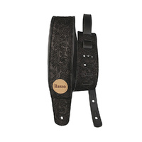 Basso Floral Embossed Black Leather Guitar Strap VTSL52, 1.00-1.45m Length, 7.5cm Width, Sweat-Resistant, Reinforced Tips