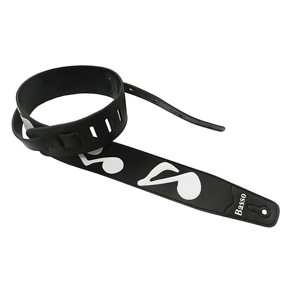 Basso Synthetic Guitar Strap with Stitched Musical Notes - Black SRV-BLK, Adjustable 100-150cm Length, 6.0cm Width