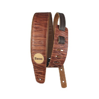 Basso Vintage Embossed Brown Leather Guitar Strap VTSL01, 1.00-1.45m Length, 7.5cm Width, Sweat-Resistant Lining, Foam Padding