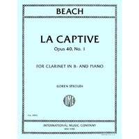 A sad, bittersweet opening movement from Three Compositions for Violin and Piano. For B flat clarinet and piano. La Captive Op. 40 No. 1 Composer: Amy Beach Arranger: Loren Stroud Publisher: International Music Company Instrument: Clarinet Pages: 1