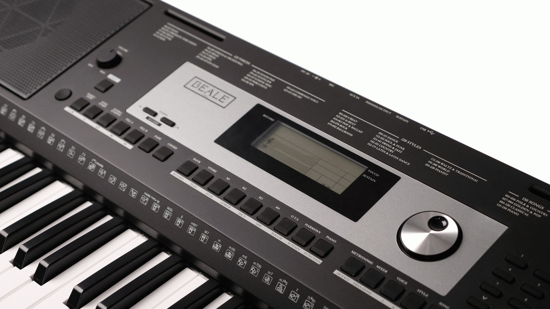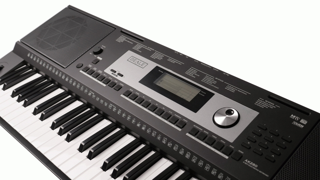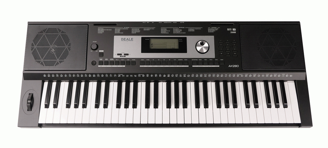 BEALE AK280 KEYBOARD ANZ VERSION FEATURE PACKED INTELLIGENT KEYBOARD 61 NOTE TOUCH SENSITIVE KEYBOARD WITH METRONOME, LESSONS, CHORD DICTIONARY & ARRANGEMENT FUNCTIONS! Perfect for beginners & those looking for a space efficient learning keyboard with demo songs and 150 music library presets to assist learning in a fun & interactive environment. Enjoy a wide range of acoustic & electronic sound selections, featuring pianos, organs, guitars, orchestral, synths & Drums - 633 Sounds! Play along with the Interactive arranger patterns in a variety of musical genres, putting a whole backing band at your fingertips to play along with or create real time arrangements - 220 Styles! The AK280 features 61 Touch Sensitive Keys with 3 Dynamic touch levels that allow for expression & dynamics. Split & Layer keyboard modes allow you use 2 different sounds at the same time. Split sounds for Left & right hand parts, like Bass & Piano or Layer 2 sounds across the whole keyboard like piano & strings for a fuller sounding performance. Choose the Harmony function to add a harmony effect to the notes played on your right hand to enhance your performance. Music Tutor system will guide you through on board lessons with Metronome & Chord dictionary functions to assist the learning process. Practice modes include Timing, Note accuracy & complete performance assessment, so you can monitor your development. Housed in an attractive synth style chassis the AK280 comes complete with a detachable music stand and built-in stereo sound system & headphone outputs for private practice. Other connections options include Aux input for connecting MP3 or CD players, Microphone Input so you can sing along with your performance or on board song playback (Karaoke Style) With the added bonus of USB Midi Connectivity you can connect directly to your Computer for interaction with the plethora of Music Software Programs. Powered by wall AC or battery power, you're ready-to-go for either home or portable use. The AK280 has everything you need to start playing & Creating Music! Specifications: 61 Touch Sensitive Keys with 3 Dynamic touch levels for expression & dynamics. 633 Sounds, 220 Arrangement Styles & 150 Music library Presets & 128 Note Polyphony. Adjustable DSP Effects 10 - Reverbs & 10 - Chorus, 6 EQ Types. Music Tutor system with Chord dictionary & Metronome functions. ( Tempo range = 30-280) Split, Layer, transpose & Harmony Keyboard Modes available. Music Song Recorder - Record & playback your performance including backing tracks. (O.T. S) One Touch Setting - Save & Recall all related settings including Voices, split, layers, digital effects Plus Accompaniment style & tempo - 32 Memory Locations. Multi-function LCD Display & intuitive control panel. Detachable Music Stand and built in stereo speakers. Connections: USB Midi, Multi-function Pedal Sustain, Soft, Start/Stop, Audio & Headphone Output, Aux input, Microphone input. Includes AC power supply or battery power option available for portable use. Auto Power Off timer - 30 or 60 Minutes.