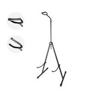 Very heavy duty stand with excellent stability. Suitable for 4/4-3/4  cello or any size double bass. If required the instruments endpin may be left extended at playing length as the support cradles can be adjusted to the required height. The lockable U-shaped neck holder is also easily adjustable. Each foot of the stand is adjustable to suit all floors. This stand includes a holder for the bow.