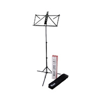 BM6 Features: Three section student music stand Three heavy duty height adjustment screws Screw knob for desk tilt adjustment Carry bag included Triple lever-lock height adjustment for single handed operation Press button mechanism for desk tilt angle 600 denier material carry bag included Dimensions when collapsed: 57x11x6cm Ultra lightweight 0.6kg Max height to bottom of desk: 125cm