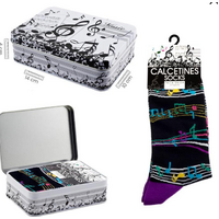 Socks Black with Purple Heels/Top with Colourful Manuscript plus Tin