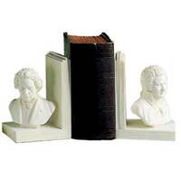 Bookends Pair - Beethoven & Mozart - Alabaster & Marble Powder - Made in Volterra, Italy