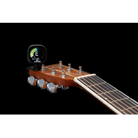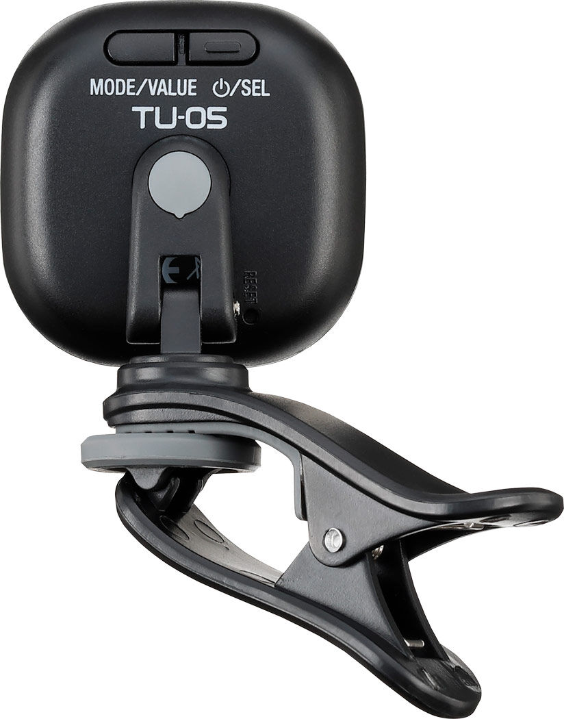 The TU-05 features a large color display with super high-contrast, offering great visibility for quick tuning anywhere you play, from dark stages to bright sunlight. The rugged, padded clip provides secure mounting on your instrument's headstock, ensuring stability during performances.