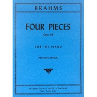 Composed by Johannes Brahms (1833-1897). Score. Authentic Edition Four Pieces (3 Intermezzi & Rhapsody) Op. 119 Composer: Johannes Brahms Publisher: International Music Company Instrument: Piano Pages: 1