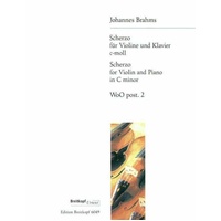 Scherzo was Brahms contribution to the F-A-E Sonata - a collaborative sonata by Schumann, Brahms and Dietrich, conceived as a gift for the acclaimed violinist Joseph Joachim. Although composed in 1853 it was only permitted to be published in 1906, about 10 years after Brahms' death. Grade 8 level. Sonatensatz, Scherzo in C minor WoO post. 2 Composer: Johannes Brahms Publisher: Breitkopf & Härtel Instrument: Violin Pages: 16