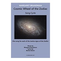 Twelve original songs composed by Margaret Brandman to the lyrics by Benita Rainer are set for Baritone or Mezzo Soprano voice ranges, plus optional melodic lines for higher voices. Music Scores and lyric sheets included. The songs cover a universal span, from each sign's deepest motivation for love, to each soul's most heartfelt desire for spiritual expression. Journey with Aries, the first primal force of the calendar year, to Taurus' expression of security, and Gemini's mercurial desire for freedom. Experience the depths of Cancer's protection, the instinctual and strident soul creativity of Leo, the amazing Virgo the virgin's cosmic genesis, and Libra's search for harmony. Scorpio will take you to depths you've never experienced, and, with Sagittarius, you will shoot for the stars. Catch Capricorn's goat, if you can, and Aquarius' wide-ranging humanity, before experiencing the final resolution of the human spirit with Pisces, the completion of the cosmic wheel. European Premiere of the choral settings of the Cosmic Wheel of the Zodiac Song Cycle by the Prague Mixed Chamber Choir under the direction of Ji? Cosmic Wheel of the Zodiac Composer: Margaret Brandman Publisher: Jazzem Music Instrument: Voice Pages: 1